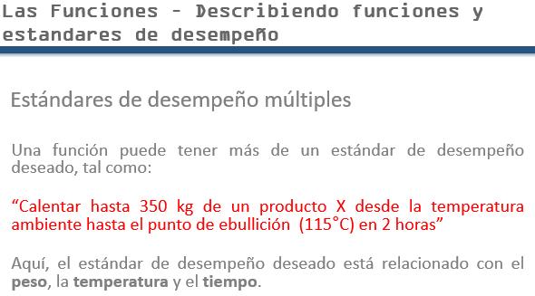 To review, Function statements contain a verb, an object as well as one or (preferably) more quantitative performance standards. They may contain code expressions such as “To be able to …” or “In the presence of …” indicating that there is a protective function protecting this function.