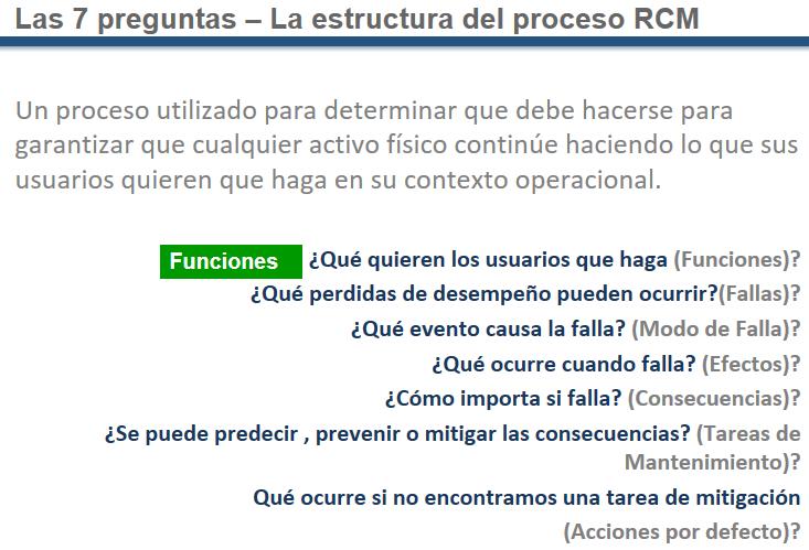 By asserting that the 7 questions guide our analysis we reinforce the idea that RCM is a coherent process that must be followed meticulously. The functional analysis establishes the base upon which the entire edifice of maintenance rests.