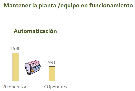 Answer: Seven operators. One tenth the labor. Did the plant in 1991 require more or less maintenance? Answer: More. Why?