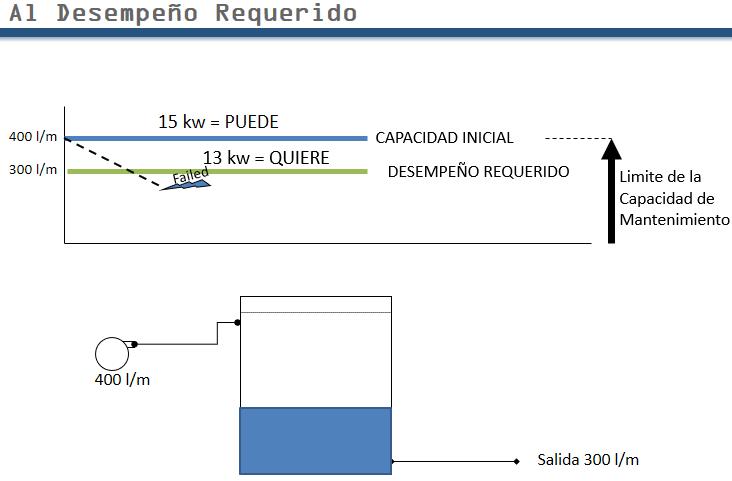 Desired performance must be within the initial envelope of capability. Why not equal to? Go to another little system which many of you have seen before. pump 400 lpm feeding tank being emptied at 300 lpm Why? 2nd law of thermodynamics. Everything will deteriorate. That’s where we’re all heading, our bodies anyway. Chaos here we come. Our pump impeller will wear.