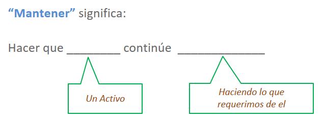 In the context of this course, the word “maintain” means no more no less, than to sustain an asset’s required functionality through scheduled tasks.
