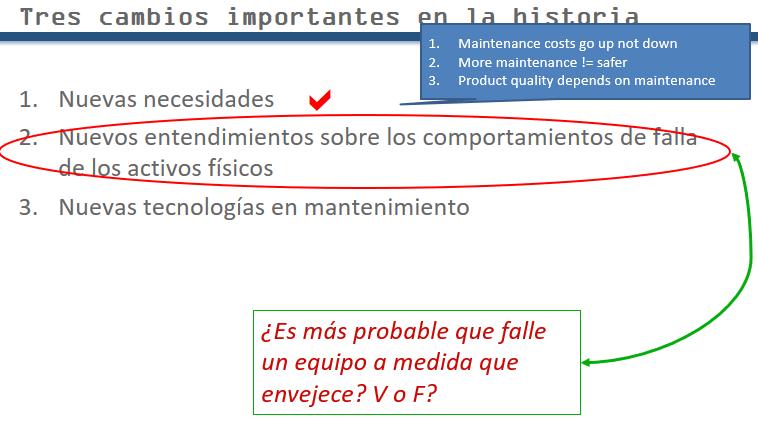 The second broad change in maintenance took place on the psychological and philosophical planes. Our understanding of failure behavior that defines when failures are most likely to occur, has altered. Conflicting opinions among participants when answering the (true of false) question in the slide testify to the inertia of long held ideas.