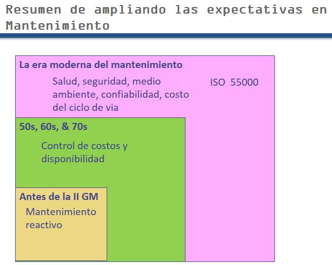 Second Generation: Growing mechanization. The focus was on availability and lowering cost. Because the assets were getting expensive a reasonable amount use (availability) was required. Third generation: availability, reliability, cost effectiveness, safety, quality, environment, longer asset life.