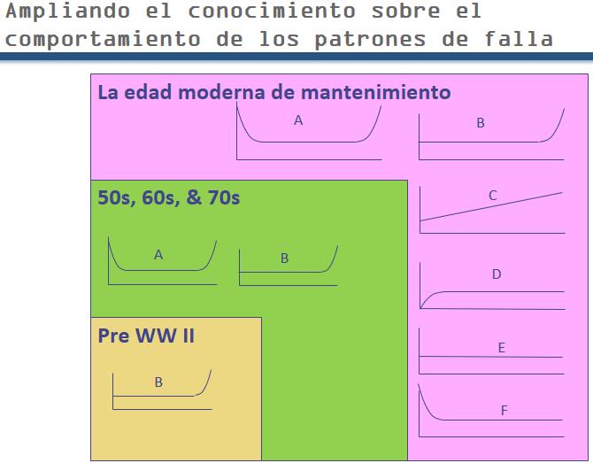 The change in understanding by engineers and maintenance staff regarding equipment failure behavior is represented by these expanding boxes.