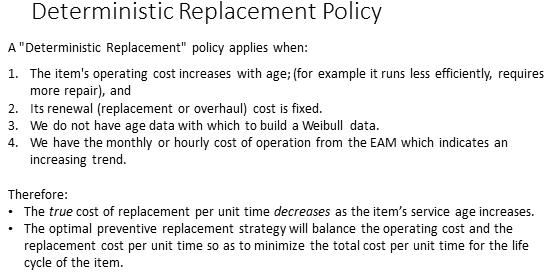 When organizations do not follow good maintenance information procedures such as those described in the living RCM module of this course, they will be unable to perform age based or condition based reliability analysis for establishing optimal maintenance policies. As an alternative they may default to purely financial when it is known that total costs of operation increase with the asset’s age.