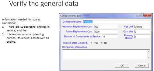 Once an age data analysis such as Weibull analysis is carried out we may introduce business factors and constraints to optimize preventive renewal policies and spares storage policies. Slide 3 lists the policy planning information derived from the optimization exercise.